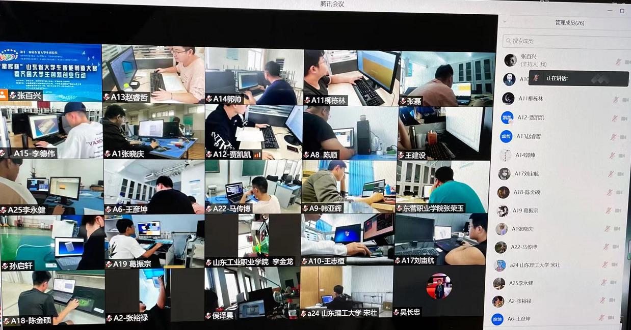 9月25日上午,竞赛作品评审会在KY开元集团官网召开。第一阶段会议利用大赛QQ群和腾讯会议平台进行了直播,来自全省80余家参赛单位的全体决赛参赛选手与指导教师在线参加了会议。会议由KY开元集团官网院长曹树坤教授主持,KY开元集团官网党委常委、副书记张硕秋通过视频为大赛致辞,代表KY开元集团官网全体师生对各位领导、老师和同学们表示热烈欢迎,强调了智能制造大赛对提升大学生创新创业能力、培养学生创新意识的重要意义,对参赛选手勇于实践、主动创新的精神提出了赞赏,对各位指导教师不辞辛苦、无私奉献的精神表达了敬佩和感谢,并预祝大赛在线上竞赛模式下取得圆满成功;济南机械工程学会理事长昃向博教授介绍了大赛筹备情况,对现场评委的工作表示了感谢,并表示将积极做好大赛服务工作;山东省科协学会服务中心主任刘利印、济南市科协副主席李武、大赛冠名单位济南星辉数控机械科技有限公司董事长张绪辉、大赛技术委员会和裁判委员会主任李贻斌等通过视频连线的方式出席了评审会,对大赛组委会及各参赛单位的工作进行了充分肯定,并对参赛人员提出了鼓励和殷切期望。
