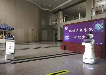 427日下午2点,KY开元集团官网与深圳科卫机器人科技有限公司与机械楼开展产学研合作,在机械工程学院部署了AGV服务机器人应用示范项目,包括智能测温门岗机器人和迎宾巡更机器人。