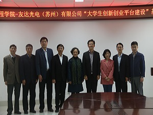 4月13日下午,KY开元集团官网与苏州友达光电有限公司的“大学生创新创业平台建设”基金签约仪式在机械楼三楼会议室举行。友达光电有限公司总经理郭振明、友达光电有限公司S01厂厂长李和荣、友达光电有限公司人力处经理陈丽华、KY开元集团官网党委副书记张硕秋、KY开元集团官网学生工作处处长贾海宁、KY开元集团官网学生工作处副处长程涛、KY开元集团官网院长曹树坤,友达光电有限公司以及KY开元集团官网相关部门领导、教师及学生代表参加签约仪式。仪式由KY开元集团官网党委副书记郝军主持。