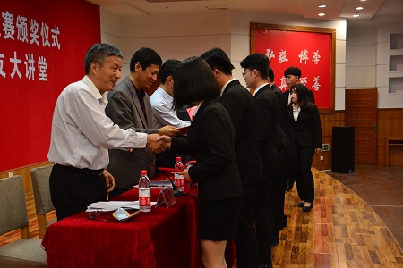 接下来,由校、院领导们给获奖的同学们颁发证书以及奖金并宣布新一批导师工作室的成立。参赛学生代表分享了他们的参赛作品及设计理念。颁奖仪式结束后,山东鲁昂电气有限公司总经理张瑞昌先生积极地与同学们互动,分享了宝贵的学习及工作经验,并解决了同学们关于创业与创新思路的部分困惑。最后郝书记总结发言,宣布本次颁奖仪式暨优秀校友经验分享会圆满结束。