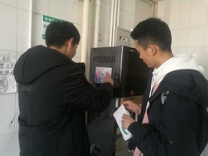 12月22日中午,志愿者们集合完毕,分成两组。在一番认真准备过后,他们分别赶往第30号和第33号学生公寓。他们首先确认可能存在安全隐患的地面,并在其周围张贴标语。在这次爱心活动中,志愿者们负责粘贴了先前悉心准备的宣传标语版,标语中透露着对同学们的关爱。因饮水机溅水使路面结冰,所以志愿者们在饮水机上也张贴了标语,并对饮水机进行了简要的维修和处理。而所随的记者团工作人员也将这一温馨的画面用相机记录了下来,让我们共同留住了这一美好的瞬间。