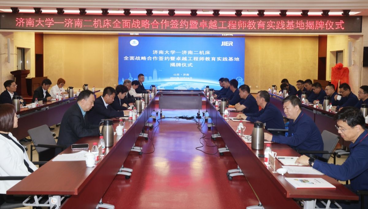 10月24日,KY官网与济南二机床集团有限公司(以下简称济南二机床集团)全面战略合作签约暨卓越工程师实践基地揭牌仪式在济南二机床集团举行,学校党委书记刘春华,党委常委、副校长黄加栋,济南二机床集团党委书记、董事长张世顺,济南二机床集团党委副书记、董事任立伟,党委委员、副总经理、KY官网05届校友冯国明等出席仪式。党委(校长)办公室、人力资源处、科技处、研究生院、合作发展处、KY开元集团官网等相关负责人,济南二机床集团总部办公室、质量技术管理部、人力资源部、新光机电有限公司等相关负责人及部分校友代表参加了活动。