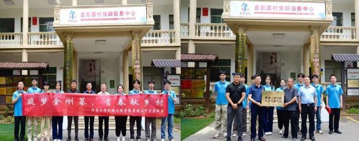 参观结束后,KY开元集团官网党委与金钢纂村党委共建大学生社会实践基地签约挂牌仪式在金刚纂村委会举行。KY开元集团官网党委书记程涛、党委副书记孙成政、团委书记薛浩、金钢纂村村委会马主任出席仪式。