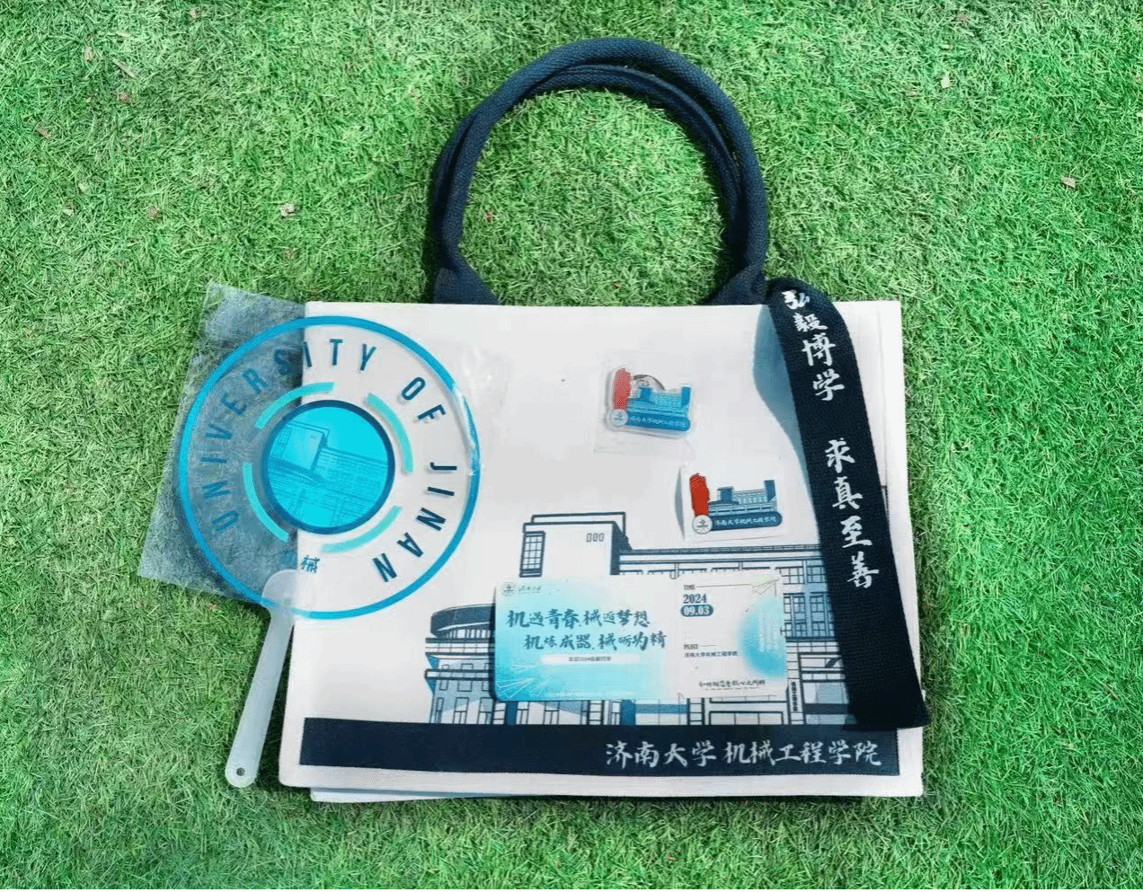 学院以专业特色为基础,以新生切实需求为出发点,打造了一系列具有机械特色的迎新活动。学院设置了以“点燃蓝色引擎,助力梦想启航”为主题的背景板,吸引新生参与助力活动、打卡合影留念。学院为每一位新生准备了迎新大礼包,其中包括定制帆布袋、院服、学院宣传页、新生文件袋,同时现场还有“送你一个锦囊妙计”的趣味活动,参加活动可获得绘图工具、定制文创扇子、种子券、学院特色钥匙扣等,增强新生对学院的归属感与融入感。