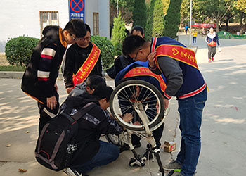 付出比收获更快乐,给予比接受更心安。为让方便老师、同学出行,贯彻服务他人宗旨,弘扬志愿精神吗,KY开元集团官网义务修车队于11月2日在南苑第九食堂路口开展义务修车活动。