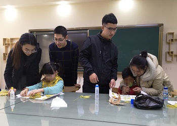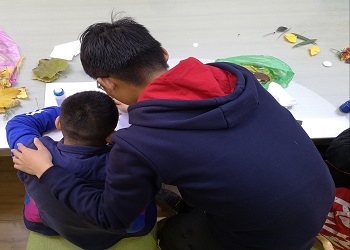 为使活动顺利展开,志愿者们利用上午的课外时间收集了各种各样的树叶。孩子们对志愿者们带来的树叶充满着强烈好奇,也表现出强烈的动手欲。活动伊始,志愿者们为孩子们讲解了树叶画的基本粘贴方法与技巧。由于泺源学校的孩子们相对于普通孩子接受能力差一些,所以在开始作画的时候,出现了很多困难。但在志愿者们的耐心引导和主动帮助下,孩子们慢慢掌握了创作方法。志愿活动过程中,志愿者们与小朋友配合默契,小朋友们积极参与。创作最后,志愿者们同小朋友一起完成了一幅幅精彩的树叶画,小朋友们快乐其中。