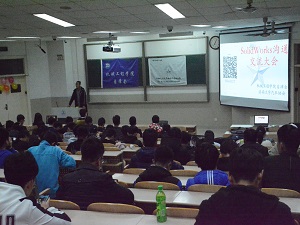 SolidWorks软件是机械专业学习与设计的必要软件。培训开始前,工作人员现场教大家安装了软件。培训大会于19点准时开始,汽车协会主席和自律会主席发表了开场辞,汽车协会副主席正式开始培训。他首先阐述了SolidWorks在大学生活及其在未来工作中的重要性,接着进行了具体操作的讲解与演示。培训包含了草图绘制,拉伸、旋转、扫描、放样特征的构建、装配等。期间,他以茶杯为例进行三维建模,在构造模型的同时灵活运用了大一同学们正在学习的相贯线等工程图学知识,激发了同学们的学习兴趣。在让大家了解软件操作的同时,副主席又给大家进一步讲解了毕业设计可能用到的相关操作,增加了本次活动的含金量。在浓厚的学习氛围中,本次培训于八点半圆满结束。