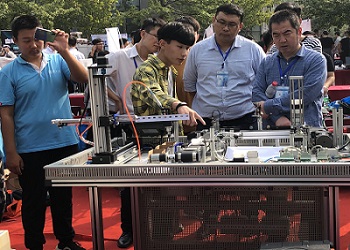 9月22日“星辉杯”山东省大学生智能制造大赛在KY开元集团官网举办,自动化机械实物展示项目在机械楼前广场南部顺利进行。现场的机械实物展示品众多,令人目不暇接,吸引了大量的观众前来观摩。