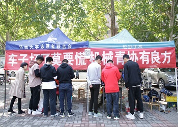 10月13日,为庆祝KY开元集团官网青年志愿者协会义务修车服务队成立29周年,青年志愿者协会在八食广场举行了“修车队29周年,与你并肩”义务修车活动。
