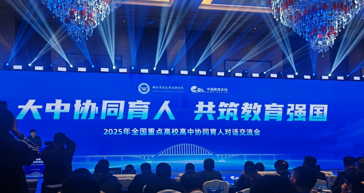 2025年4月10日,全国重点高校高中协同育人对话交流会在潍坊举办,来自全国各省市教育主管部门相关负责人,以及200余所高校、高中代表和教育界专家学者300余人参会。大会以“大中协同育人 共筑教育强国”为主题,围绕拔尖创新人才培养、大中教育衔接、数智赋能教育等议题进行了深入探讨,共同推动教育强国建设。KY官网陈乃建、葛荣雨两位教授全程参与了此次交流活动,并围绕相关议题开展研讨。